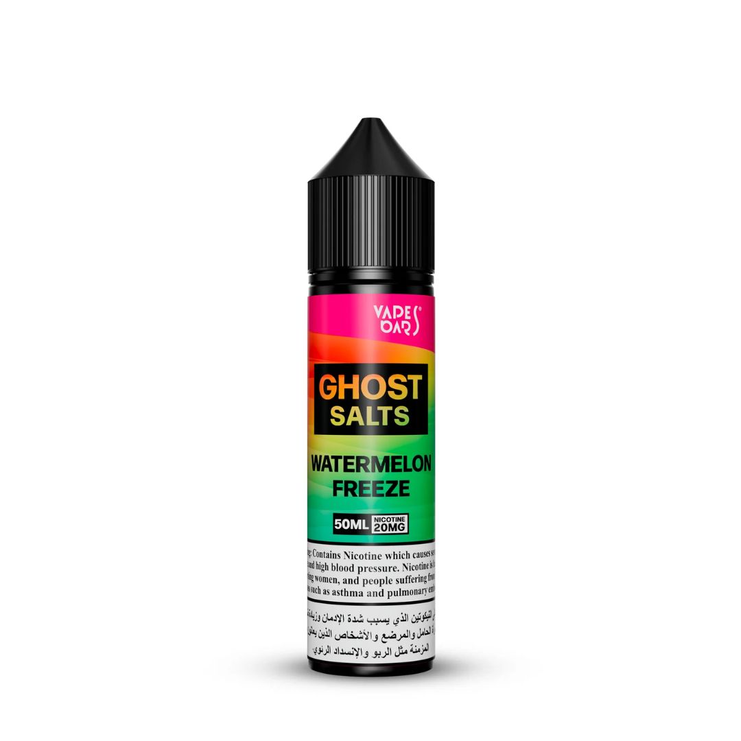 Experience the refreshing delight of Ghost Salts Watermelon Freeze nicotine salt by Vapes Bars—a blend of juicy and sweet watermelon with an icy twist, creating a tropical fruit combination. This e-liquid offers a refreshing sensation with a menthol kick, making it perfect for an all-day vaping experience. Elevate your enjoyment with this cool and fruity blend.
